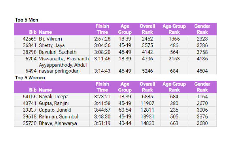 There is an excellent distribution between men and women finishers, with women making up almost half the finishers. It’s encouraging to see such strong women participation in one of the world’s most prestigious marathons.
