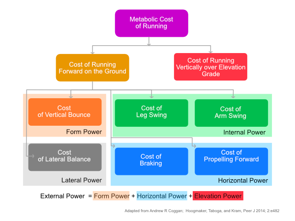 The power that Stryd measures(Stryd Power) only represents the External Power in the diagram; that is the metabolic cost of moving ourselves forward. Stryd doesn’t measure Internal power, which is the metabolic cost of swinging our arms, legs and other movements that don’t directly contribute to moving us forward.