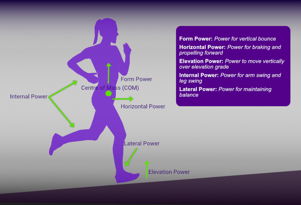 Before we can understand how Stryd calculates power, it is important to understand how we actually expend energy when running. When running we move different parts of our body to move body’s Centre of Mass (COM) forward. We move our arms & legs, we bounce from the ground, we brake, we balance, and more. All of these actions need energy, and this is called the ‘Metabolic cost of running’.