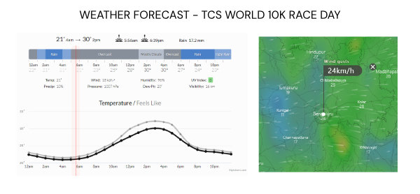 The TCS 10KM is a challenging race on a tricky course. Let us look at the weather first.