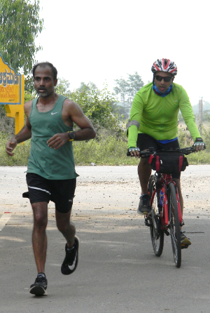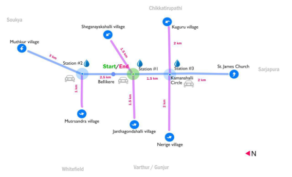 We finalized our route on Muthasandra - Sarjapura road, mapped the race route on GPS, got the elevation, and ran a few times on that route. The route is the best of what rural Bangalore can offer, very scenic, low traffic, and some really challenging sections with an overall elevation of 150-200m.