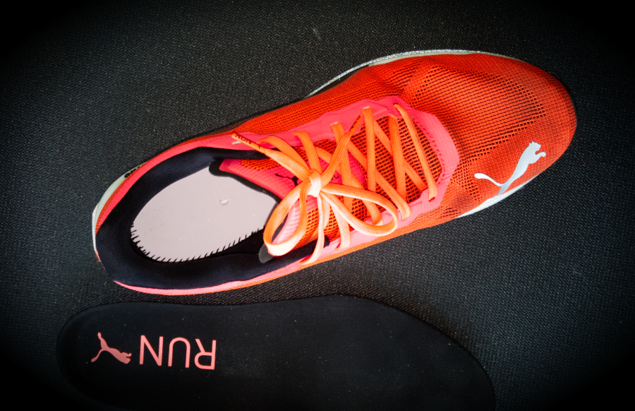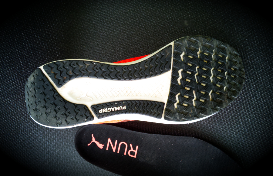 While it can be subjective, I liked the looks of the shoe. The fluorescent orange colorway really looks nice and bright for road running. The reflective Puma logo in the front, and also the reflective elements behind the heel counter are well placed. Visibility spoiler inserted in between the two layers of the midsole and wrapped around the heel is very well thought out. Shoelaces are very easy to operate. Tongue with Velocity Nitro written adds a nice aesthetic touch.