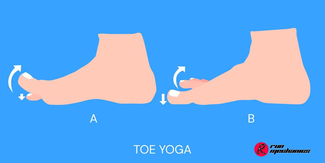 Jay Dicharry, a biomechanical expert, believes the big toe is responsible for 80-85% of the stability of the foot. The ability to control the big toe independently from the rest of the foot (arch & ankle) is key to maintaining foot stability. Toe Yoga is a workout to build this control.