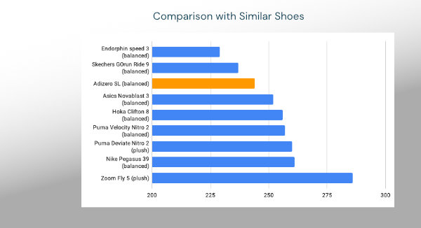 So how does it compare to similar shoes from other brands such as Asics Novablast 3, Pume Deviate Nitro 2, Saucony Endorphin Speed 3, and Nike Zoom Fly 5? Btw, All of these are priced higher than Adizero SL, but often are on sale at a price cheaper or same as Adizero SL price.?