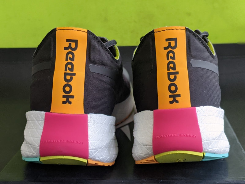 It has a bevelled heel with a high angle, and uses a moulded heel cup to provide stability. It also has a unique heel clip at the back with Reebok written over it. It adds some aesthetic to an otherwise bland shoe. It also has a lot of padding which adds to the comfort.