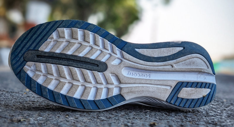 The Saucony Endorphin Shift 3’s outsole uses the durable XT-900 rubber compound in the typical hotspots, similar to the approach taken in the Kinvara where only the heel area is covered with rubber. This limited coverage raises questions about the shoe’s overall durability compared to other neutral trainers that have more extensive rubber coverage. The larger responsibility here shifts to the midsole, which is known to be durable and resilient. I would be willing to retire this one early and take a cautious approach after 600-odd kilometres. Offering traction is another area where the outsole struggles, which will make me avoid Shift and rather opt for the Nike Pegasus or the Brooks Ghost during my occasional off-roads or rainy days.