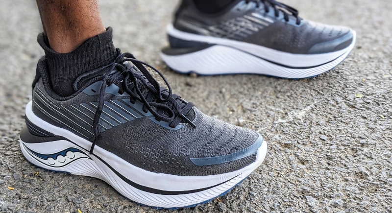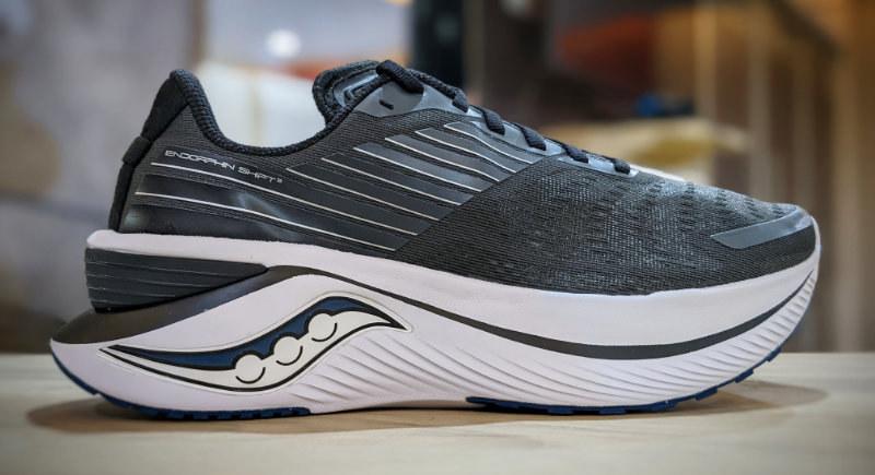 This review is of the Endorphin Shift, the first shoe in the series. The name “Shift” seems to be aptly chosen as it reflects the shift from the daily trainer series to the performance-related series. Right out of the box, the Shift 3 is a maximalist shoe. It looks imposing and reminds me of the Hoka Clifton series. It packs the PWRRUN foam in the midsole, paired with Saucony’s Speed Roll technology. Despite its high stack, the Shift 3 maintains a low 4mm offset, making it a versatile option. The Shift is conceptually a daily trainer, but in my experience, it never hesitated to pick up the pace when demanded.
