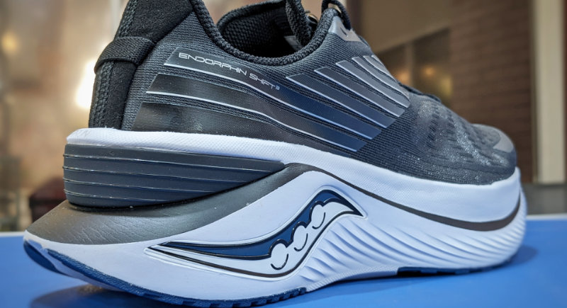 Rocker midsole geometry of Saucony Shift 3 uses the Speed Roll technology. This means that the forefoot is rockered to help the runner propel forward. The rigidity of the midsole packed with rocker makes it ideal for uptempo paces. The noticeable heel bevel aids in the heel-to-toe transition and also helps reduce impact on the knee. There’s a lot going on in the midsole and is not done yet. It adds some stability features, a more noticeable one being the TPU heel cup, which provides stability to the shoe by adding structure and support to the rearfoot.